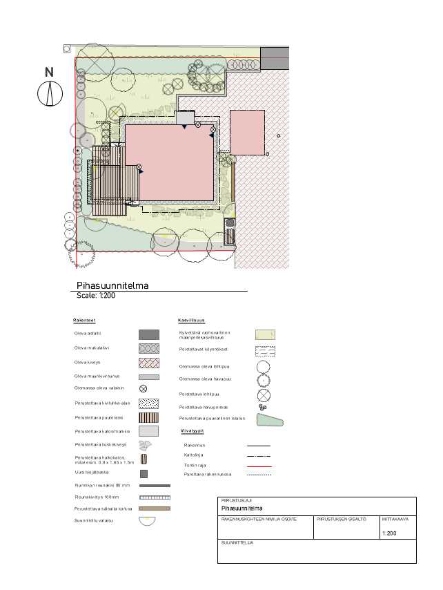 johon kuuluu edellä mainittujen sisältöjen lisäksi toimintoalueiden lopulliset koot, pihan pinnoitemateriaalit, pinnantasaussuunnitelma, kasvillisuusalueiden suunnittelu
